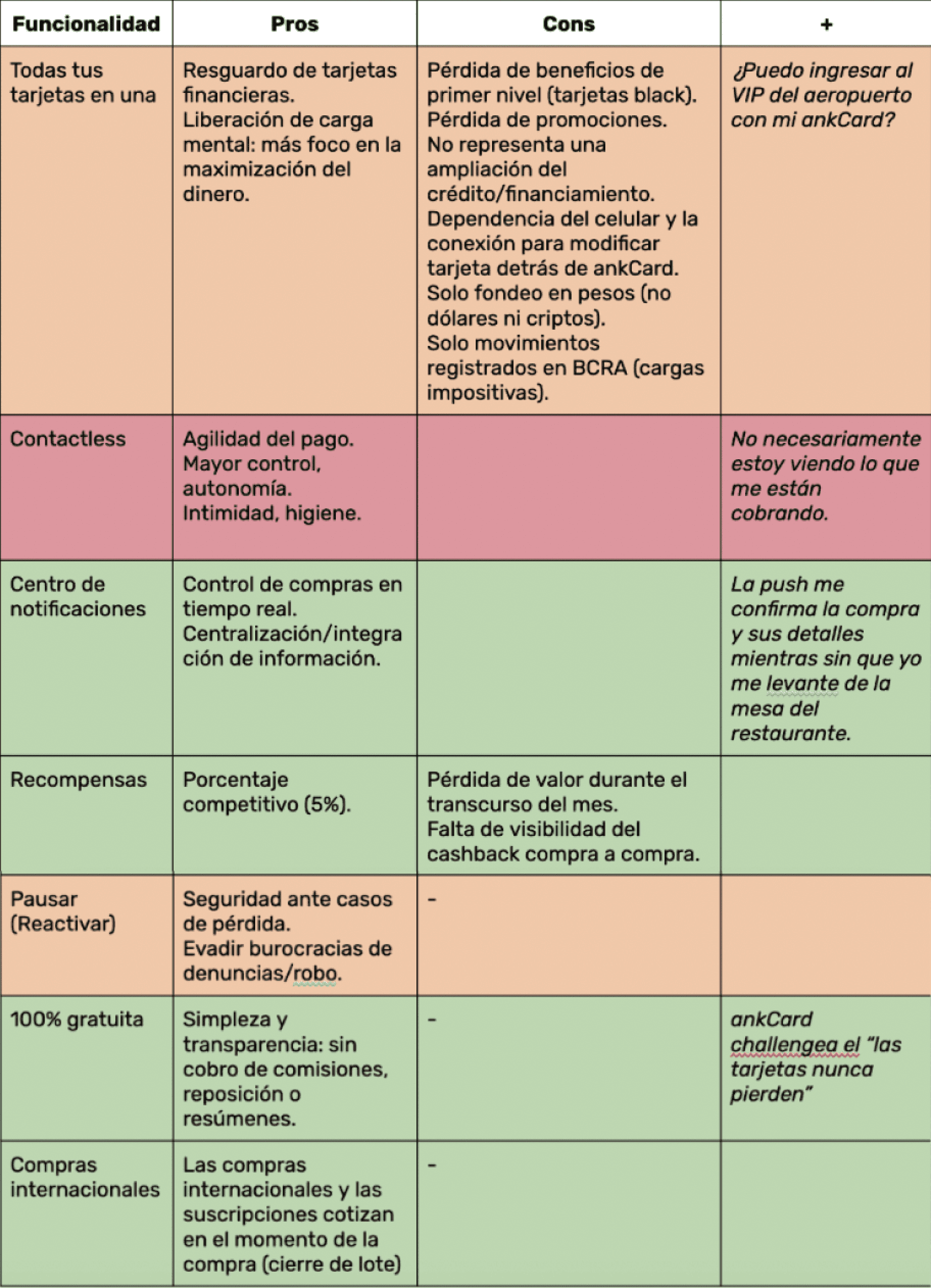 Análisis: Relacionamos los pros y contras del producto con los hallazgos de research.