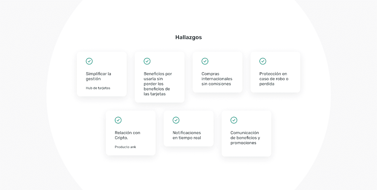 Las entrevistas y el análisis del ecosistema financiero nos permitieron identificar oportunidades claras de mejora en la propuesta de valor. Estos hallazgos evidenciaron que la propuesta de ank debía transformarse para alinearse con este nuevo escenario.