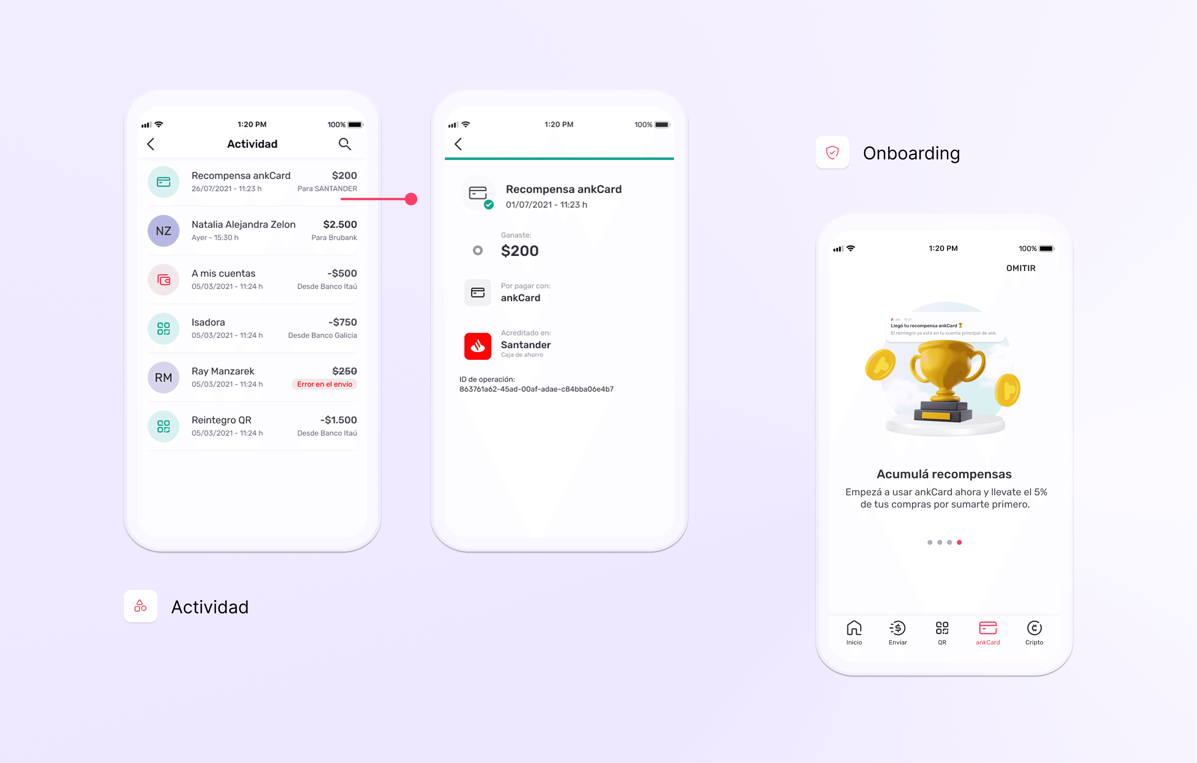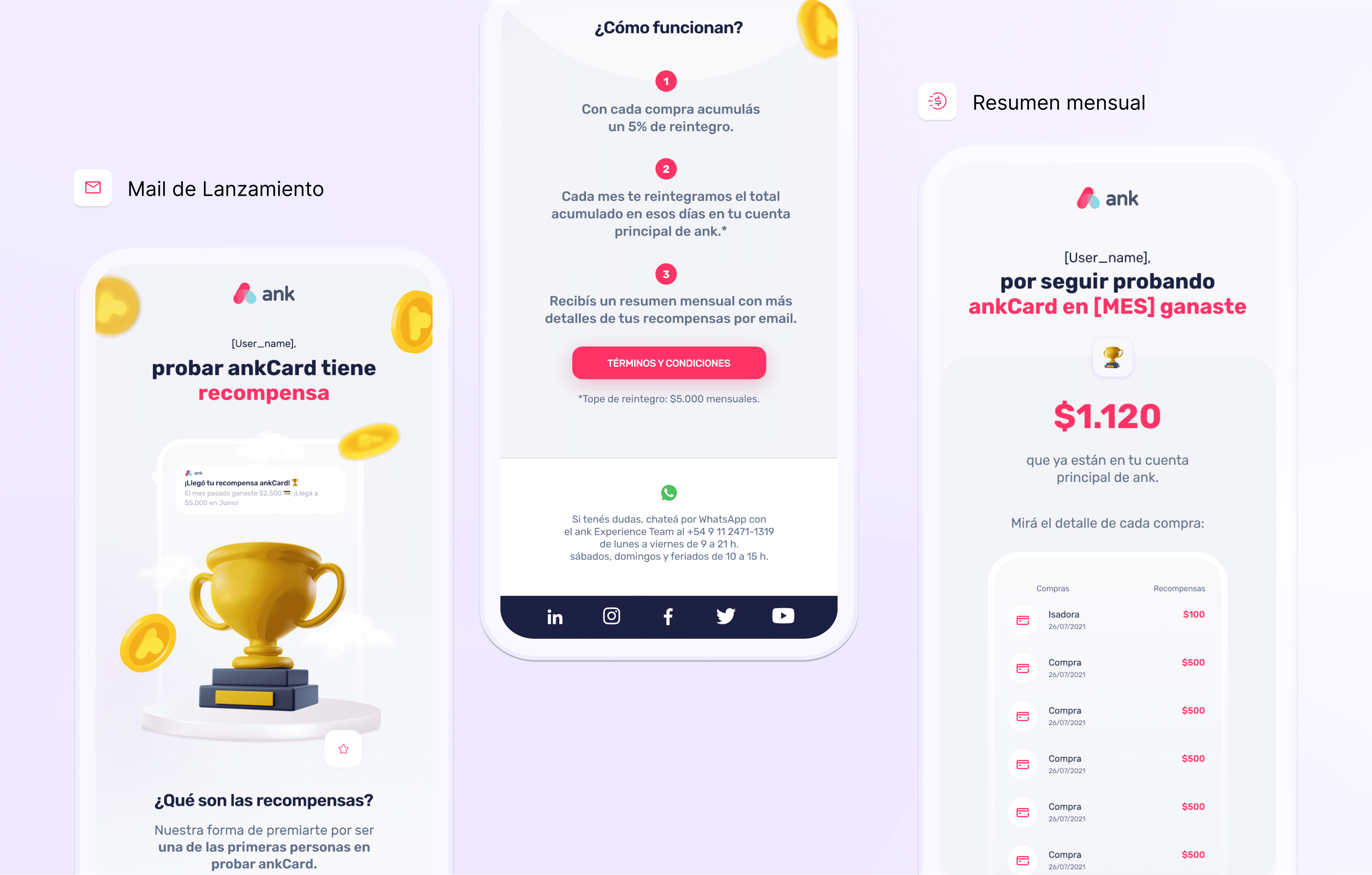 Impulsamos ankCard con un programa de recompensas bajo el concepto “ganar por sumarse primero”. El objetivo fue que las personas usuarias comprendieran cómo funcionaban las recompensas y las incorporaran de forma natural en su uso cotidiano del producto.