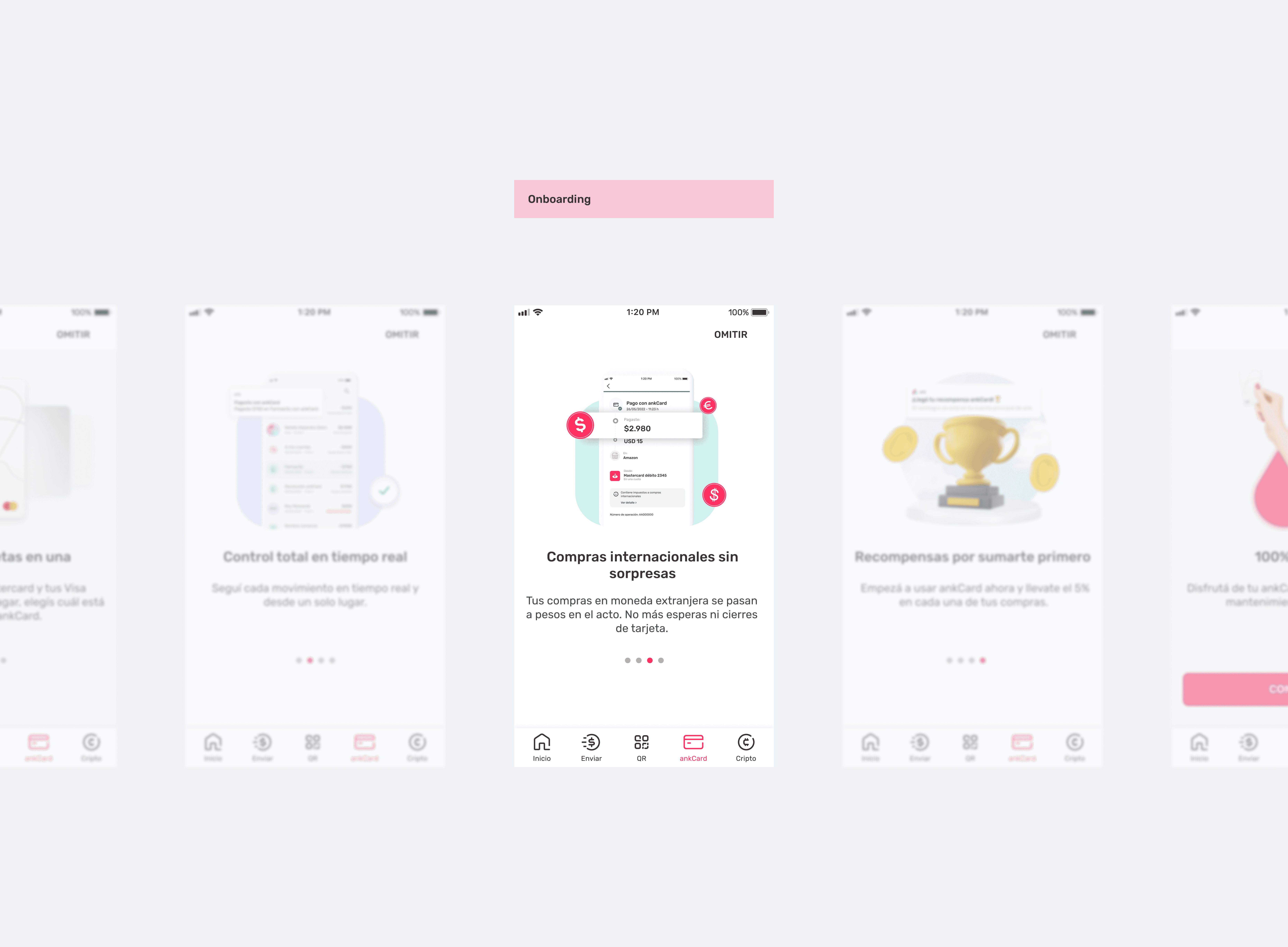 El onboarding existente no comunicaba la propuesta de valor de ankCard y se limitaba a una presentación básica seguida de los Términos y Condiciones.